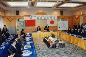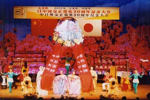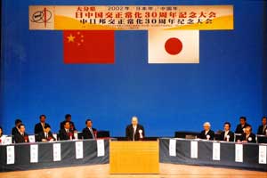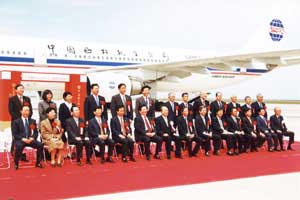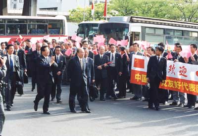 曽 慶紅 中国共産党中央政治局委員候補、書記処書記を団長とする中共友好代表団一行32名が 大分上海便の初便で来県
